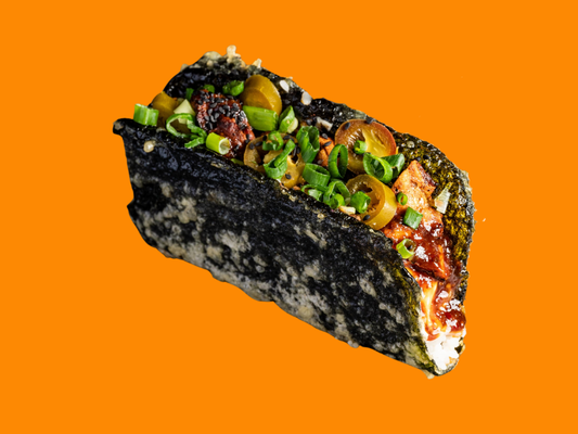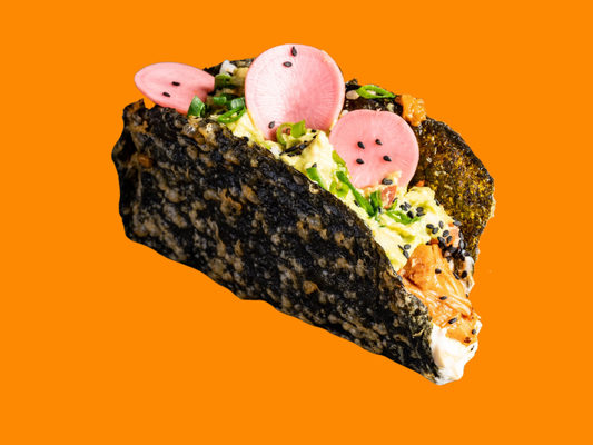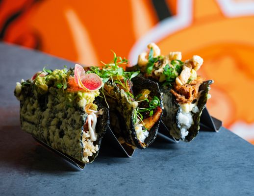 Braised beef, edamame salsa, pickled red onion, crispy nori and jalapeño mayo