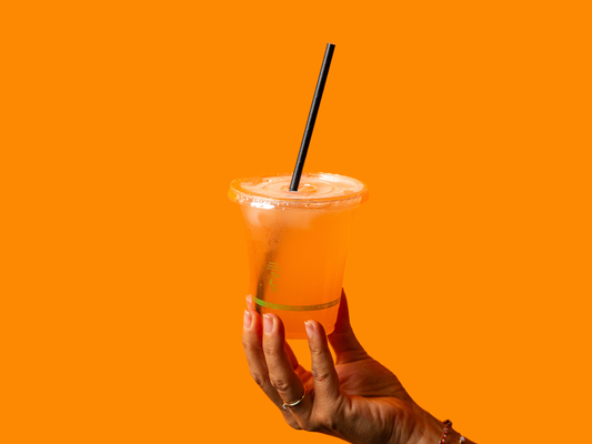 Creamy vanilla soft serve layered with yuzu passionfruit sauce with bubbly StrangeLove Yuzu Soda