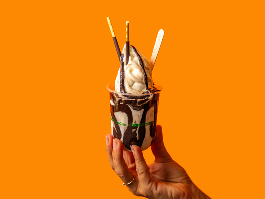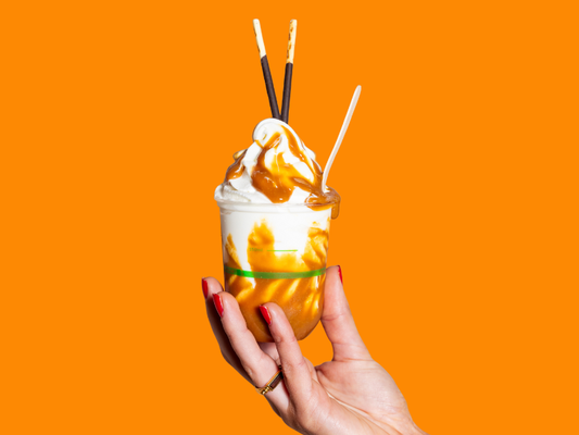 Creamy TT® Vanilla Soft Serve Ice-cream, drizzled with a lightly salted sweet miso caramel sauce. Topped with TWO chocolate-coated Pocky® sticks.