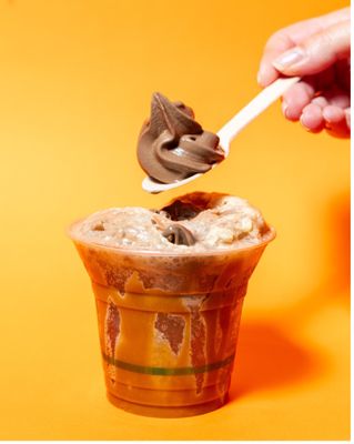 Creamy vanilla soft serve layered with miso caramel, topped with caramel corn crunch with bubbly StrangeLove soda water
