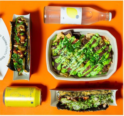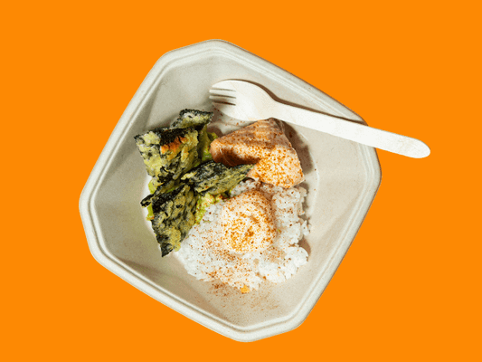 Rice of your choice, chicken or salmon, TT® lime guacamole, nori-nachos™ and sauce of your choice