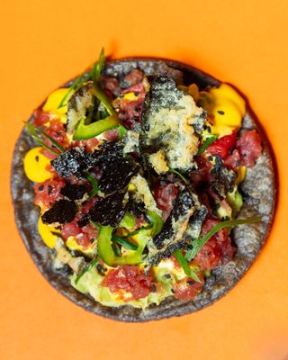 Spicy watermelon, TT® lime guacamole, sashimi tuna, crispy nori and aji hot chilli sauce